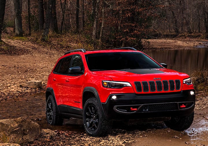 - Cherokee Trailhawk añade un acento Off Road en su diseño exterior, su parrilla de siete barras con acentos de color oscuro y sus ganchos de arrastre en color rojo son una declaración de su poder